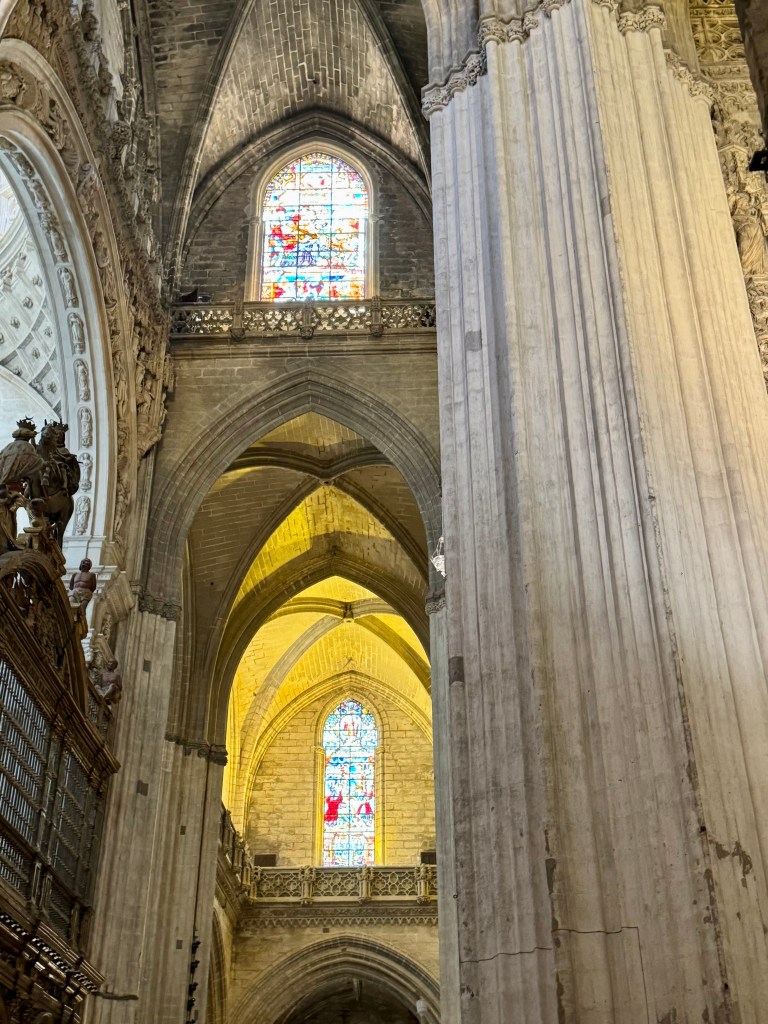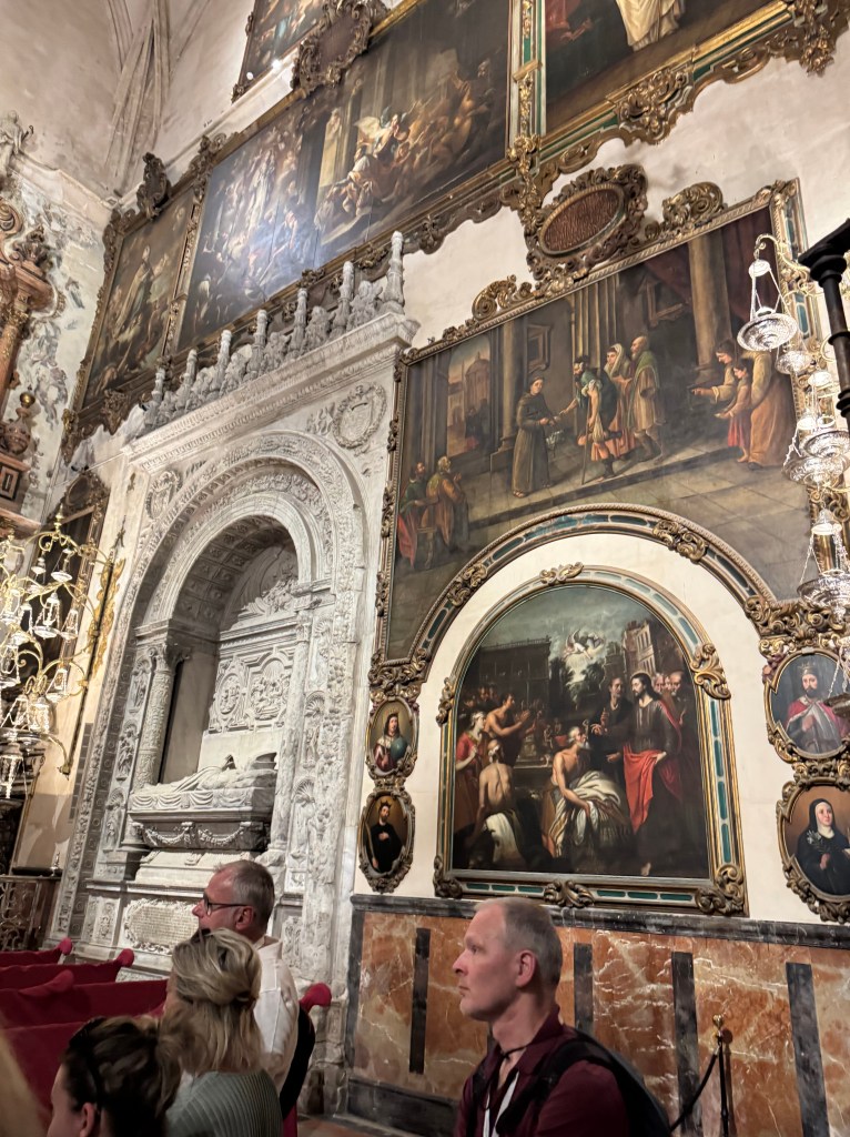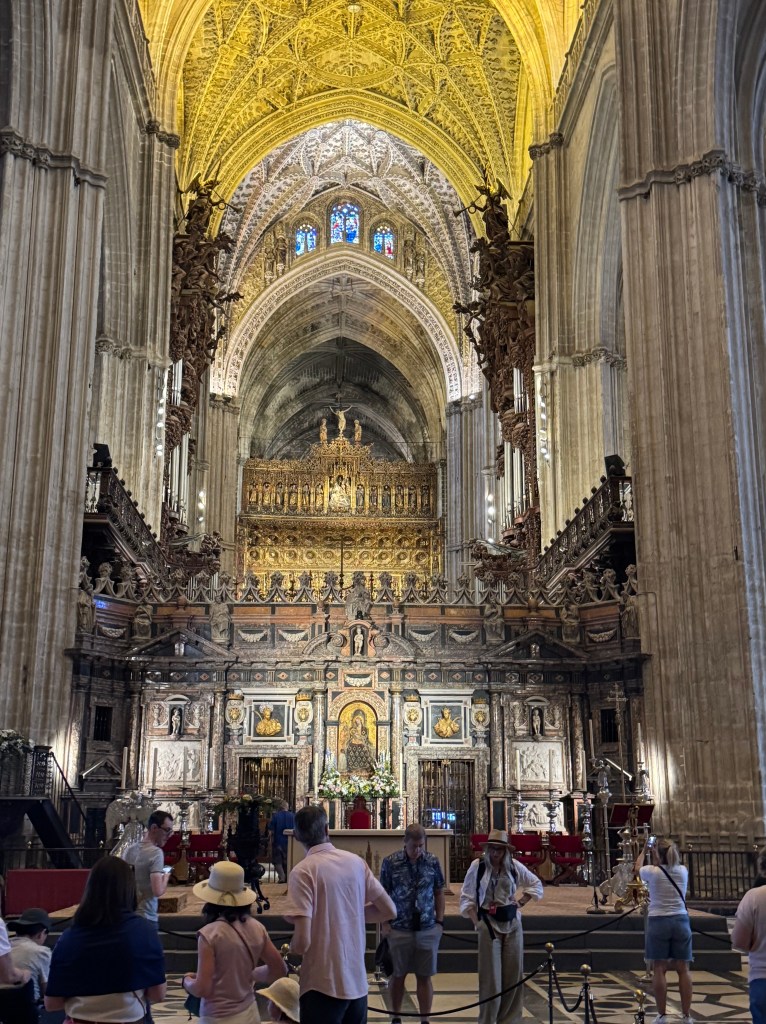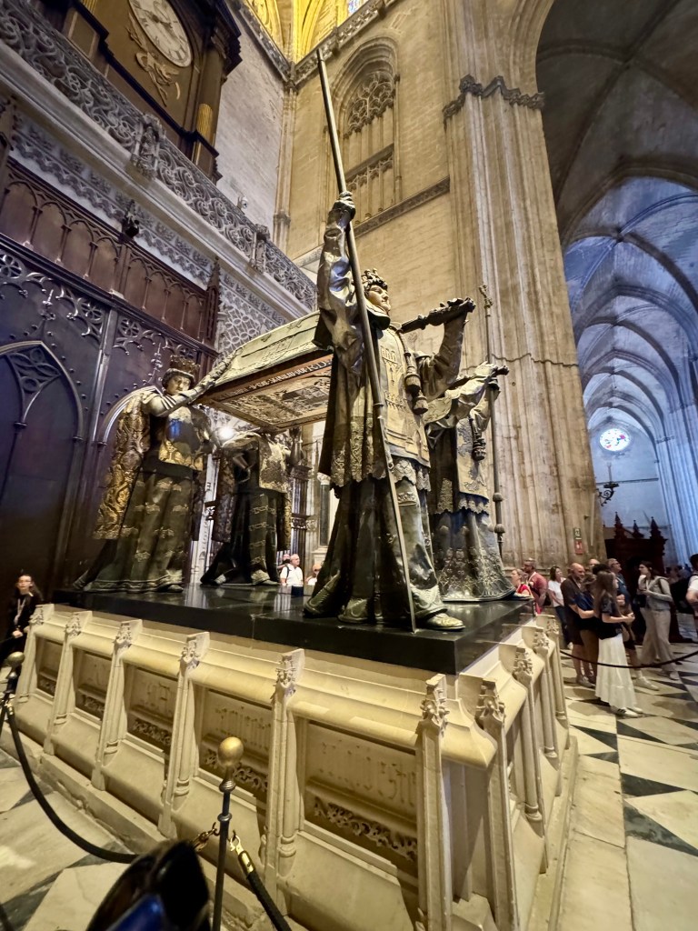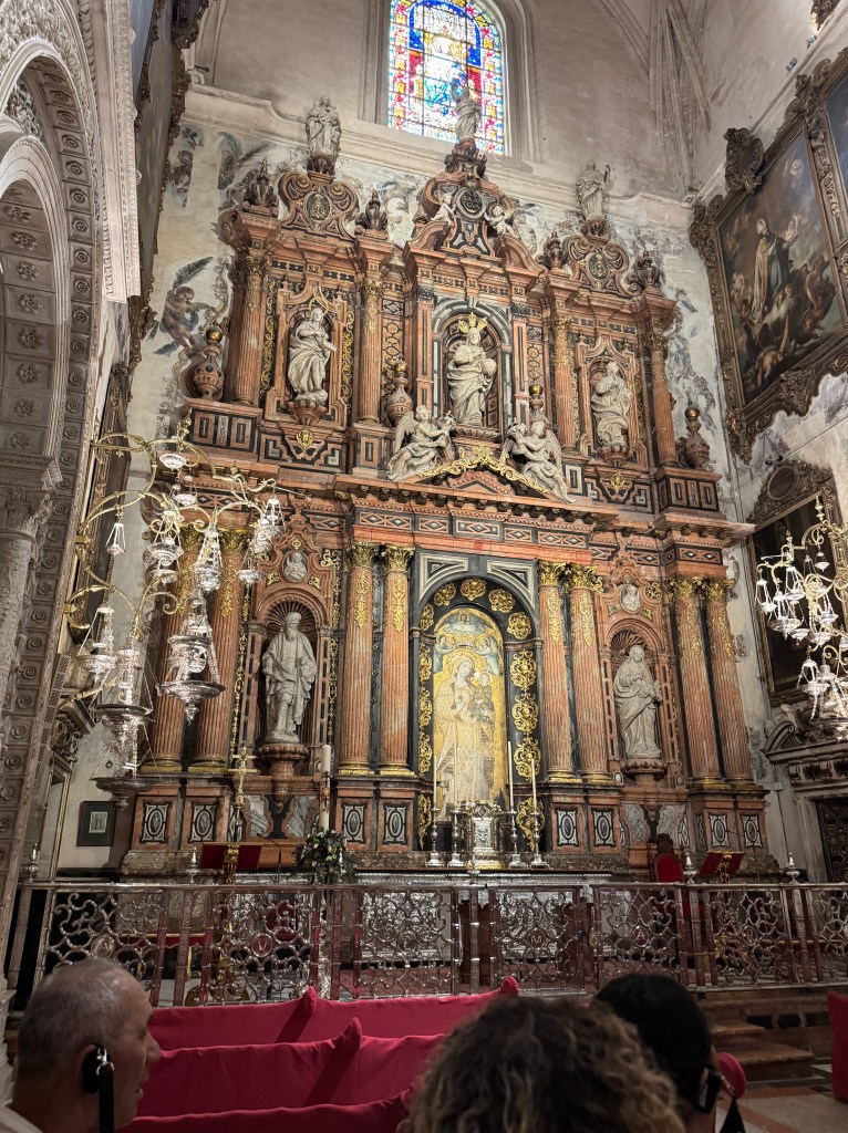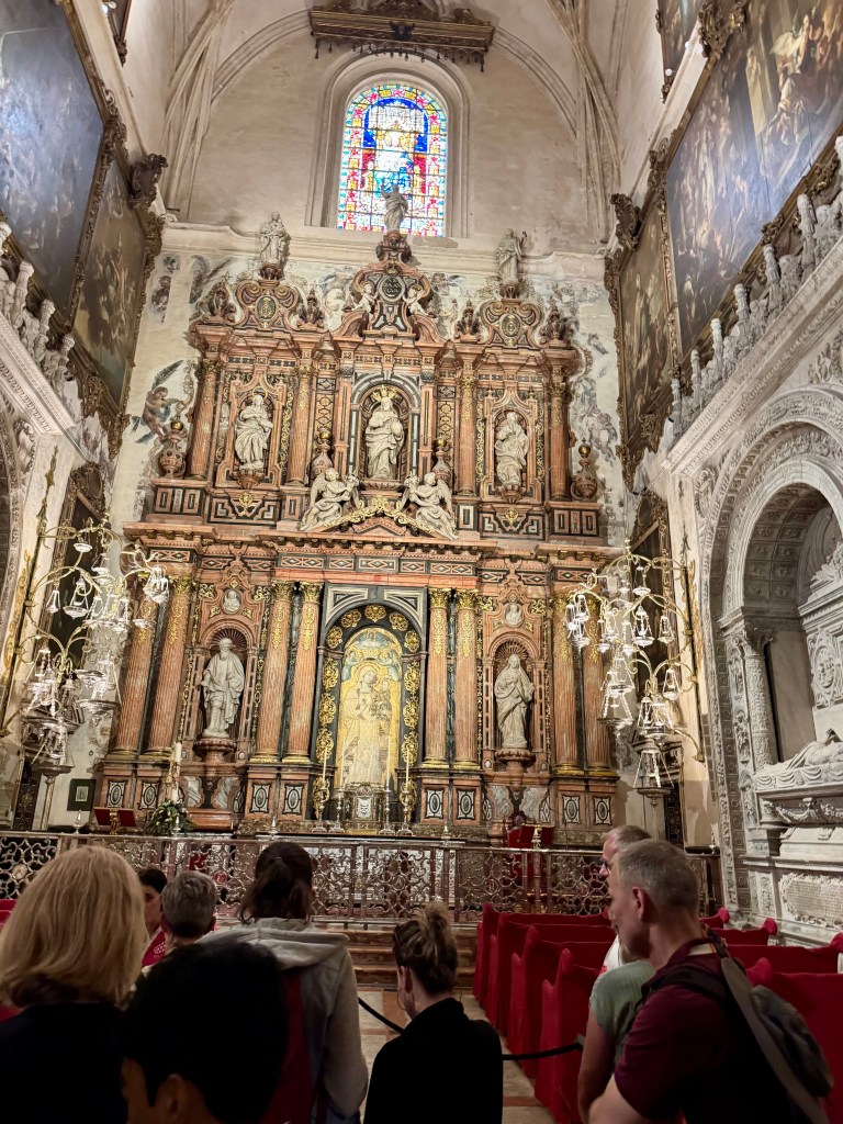We toured the Catedral de Sevilla. Our guide was very entertaining and informative. The tour lasted 2 hours. We climbed the bell tower (known as the Giralda-named after the weathervane on the top of the tower) in the catedral. There were 34 sloping ramps and 17 steps to the top. The views were beautiful. We then completed the tour of the remainder of the Catedral.