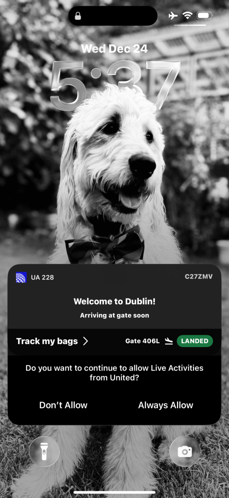 I landed in Dublin Dec 24 around 10:45am (Dublin time). Had brief naps on the way over. Had the most festive greeting at the Dublin airport! There was a group singing Christmas carols at the airport greeting travelers just outside bag claim! So fun and yes, I cried a bit (good cry). Family greeted me also!! Was the BEST!