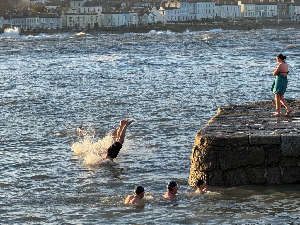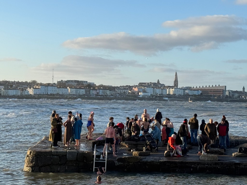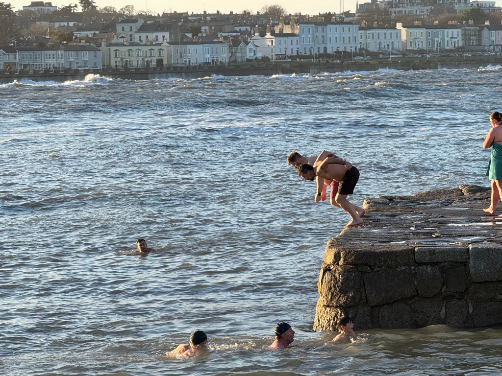 My first day in Ireland began with lunch, trip to the Sandy Cove and the Forty Foot. Had the pleasure of watching some folks partaking in an Irish Christmas Eve tradition of taking a swim (burrrrr!!!) at Sandy Cove or the Forty Foot. Brent and his friend Mark took a dip at Sandy Cove as the water was extremely rough at the Forty Foot. We cheered them on with our American “woohoos!!!”…lol!