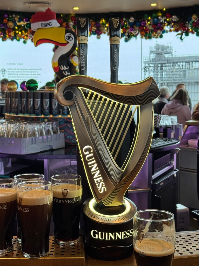 We took a taxi into Dublin. Started our Dublin afternoon with a tour of Guinness Storehouse. The tour consisted of telling the story of Guinness beer, a variety of restaurants, tastings and a rooftop bar. Highly recommended and it is family friendly.
