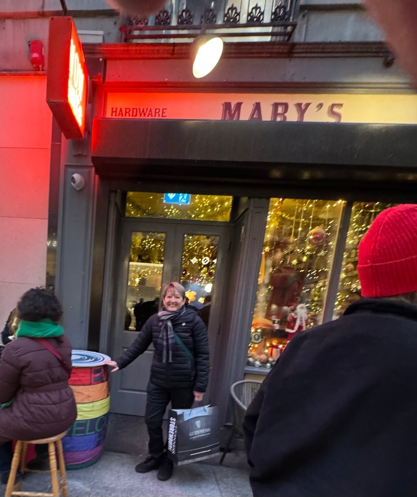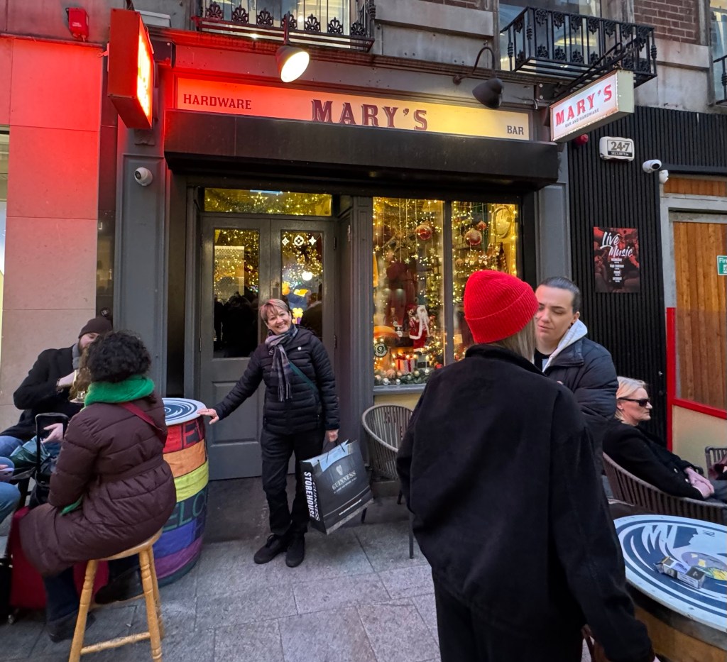 Mary has a well kept secret: she has a bar and a hardware store in Dublin. It is named Mary’s Bar and Hardware! Absolutely perfect! LOL! Mary and I went in for a beverage and to just be in that space. So fun and festive!