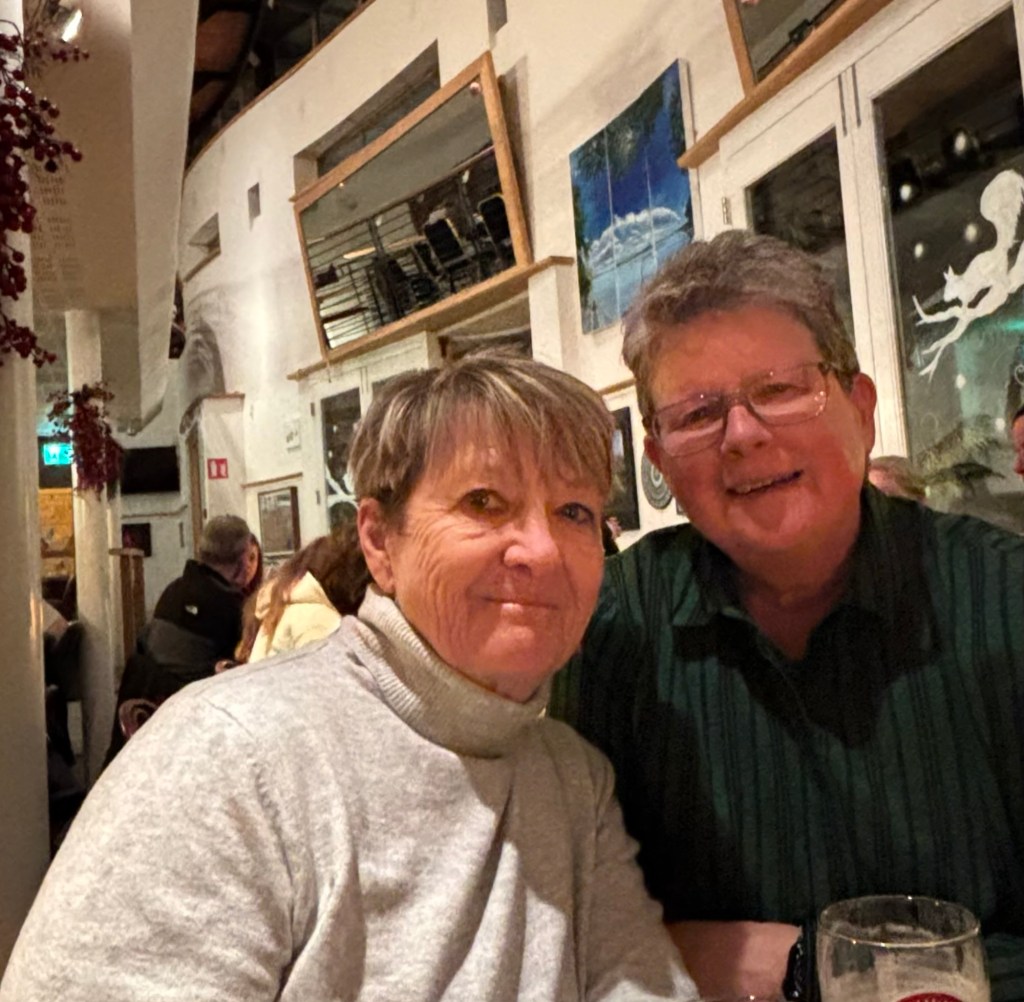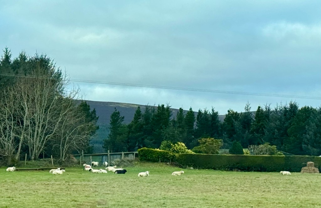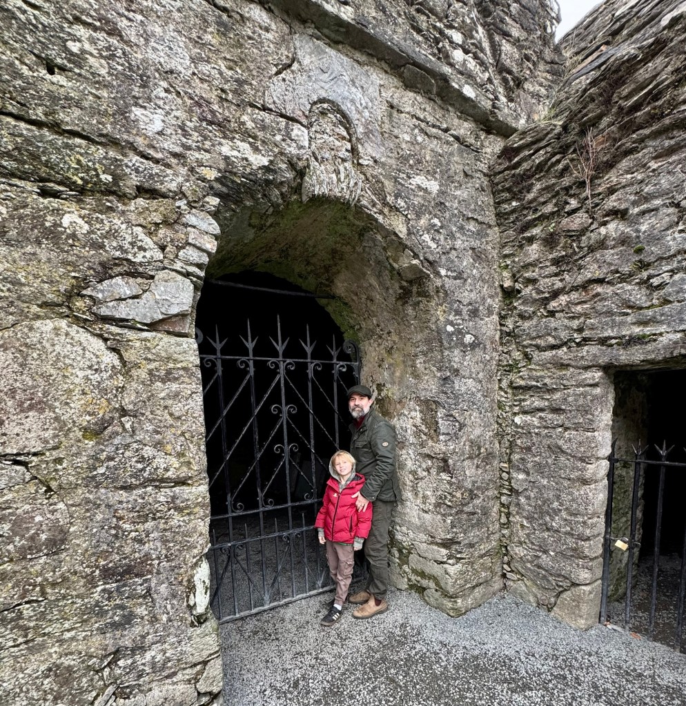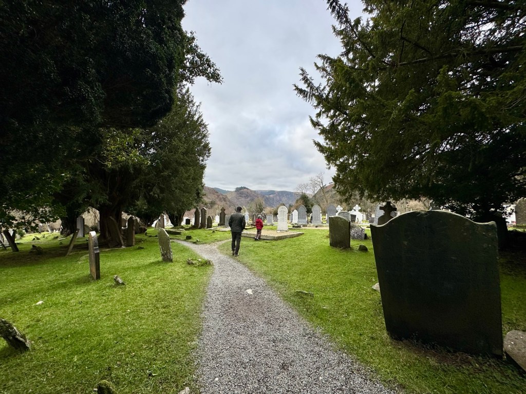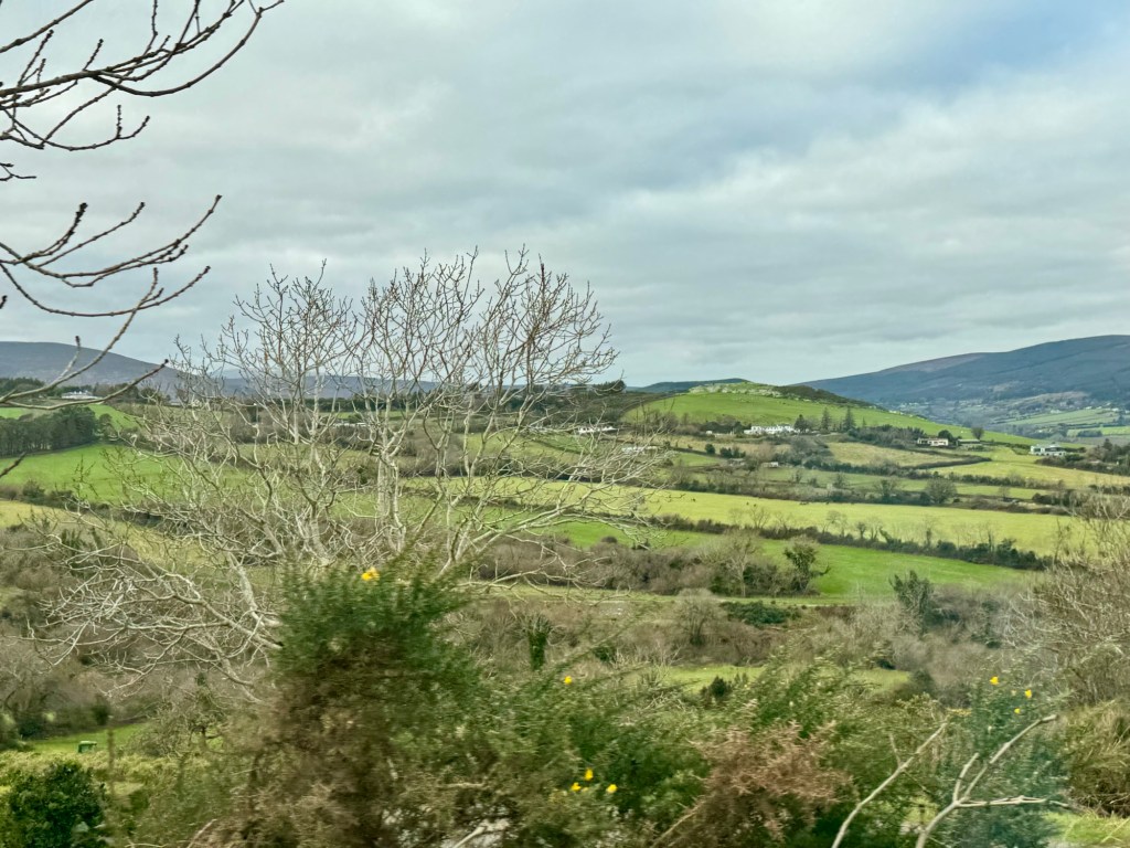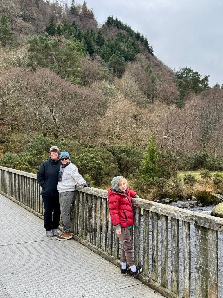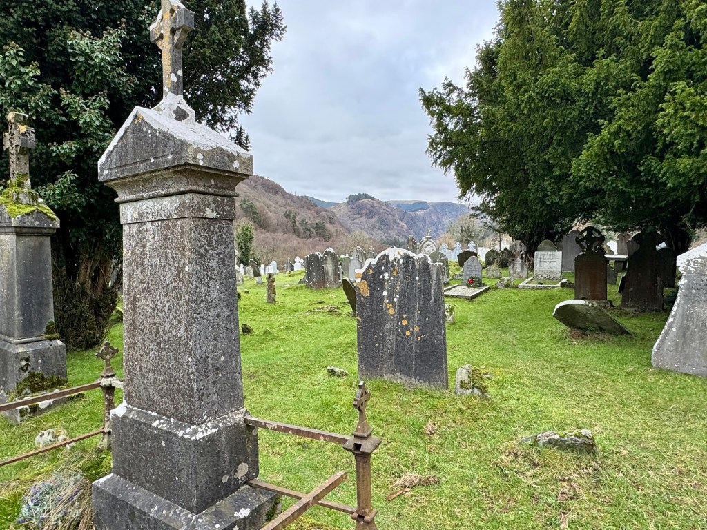 My last full day in Ireland (for this trip…lol. Note Mary staying until Jan 13) was busy and good! Myself, Mary, Brent, and Leo ventured out for a ride to Glendalough. Glendalough (“valley of the two lakes”) is located about an hour from Dublin. A Monastic site is located in Glendalough and was founded by St. Kevin. We enjoyed a beautiful car ride through the countryside. There were lots of green rolling hills and sheep-beautiful. We took a walk, had snacks and coffee at the upper Lake. There are many hiking trails in this area. Then we headed to the Monastic site. There were many beautiful Celtic crosses at gravesites, churches and a round tower. The views were gorgeous. The area was serene and though there were many folks there, I felt a calming, quiet peace in this area. Would love to return here for some hiking and some serious grounding. We returned home after a nice ride back through the countryside.