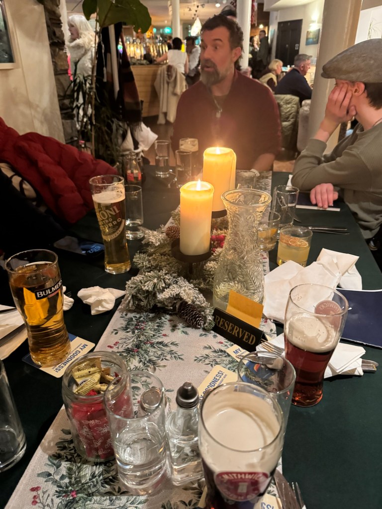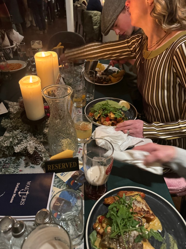 Next up: We all headed to Dún Laoghaire for shopping, dinner at Walter’s and some beautiful New Year’s Eve fireworks. The town was beautiful at dusk! Dinner at Walter’s was amazing (good choice Melissa!). I had Beef and Guinness stew—-COMFORT food!